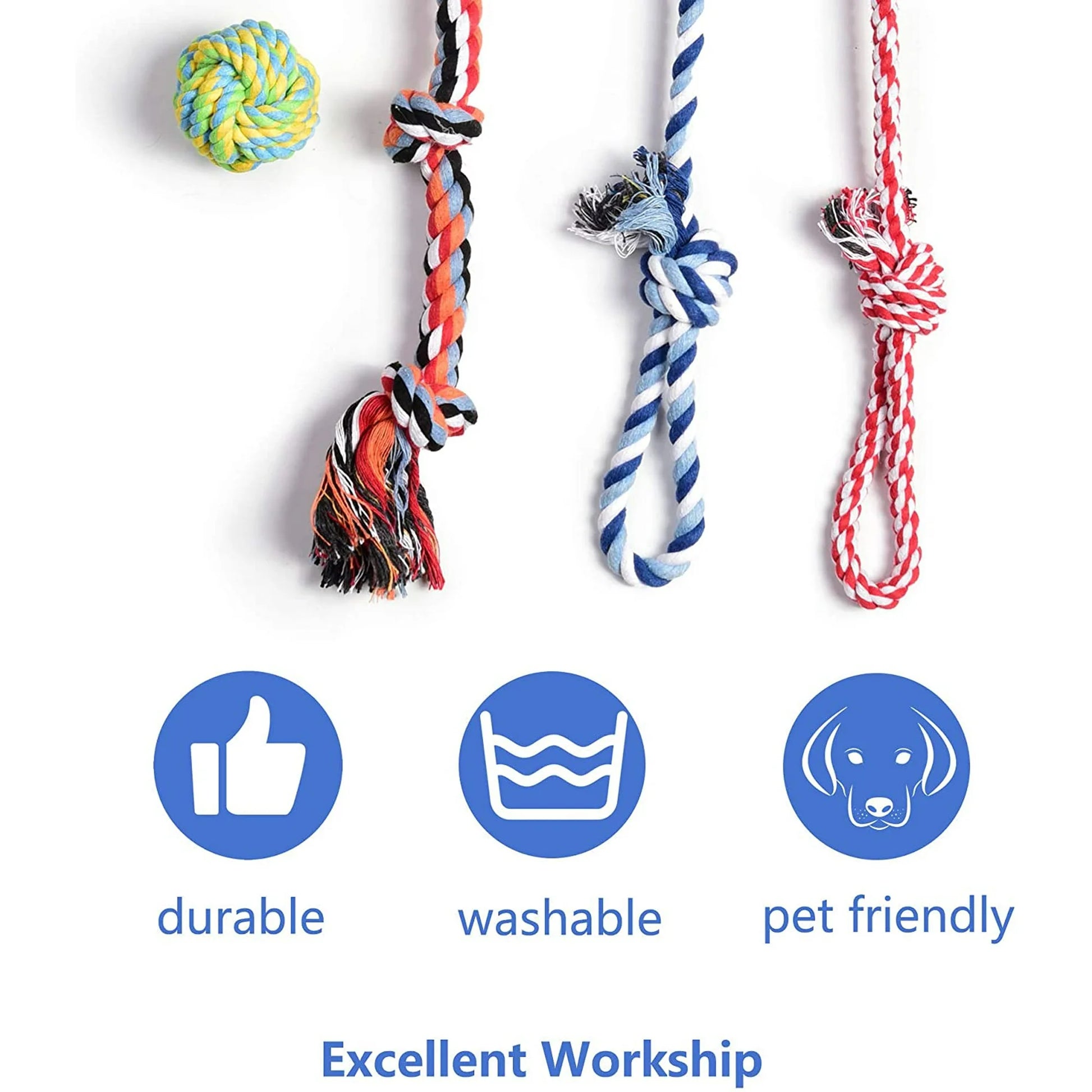 - Safe and durable: Washable 100% natural cotton, rope toys keep your dogs safe. Not your typical squeaky toys that will be destroyed in minutes, this strong dog toy bundle for small/medium dog will last longer.